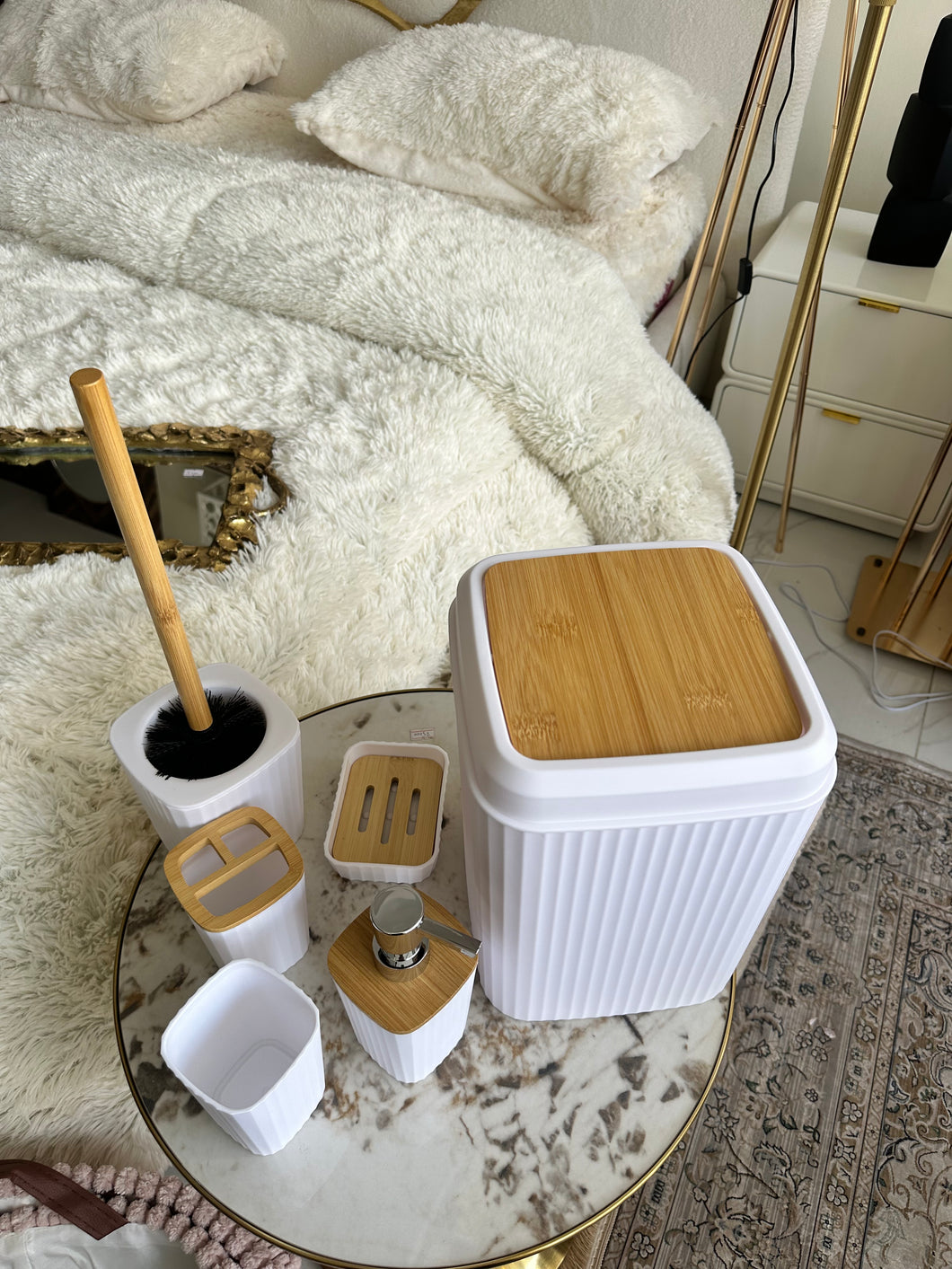 Plastic and Wood 6 pieces bathset
