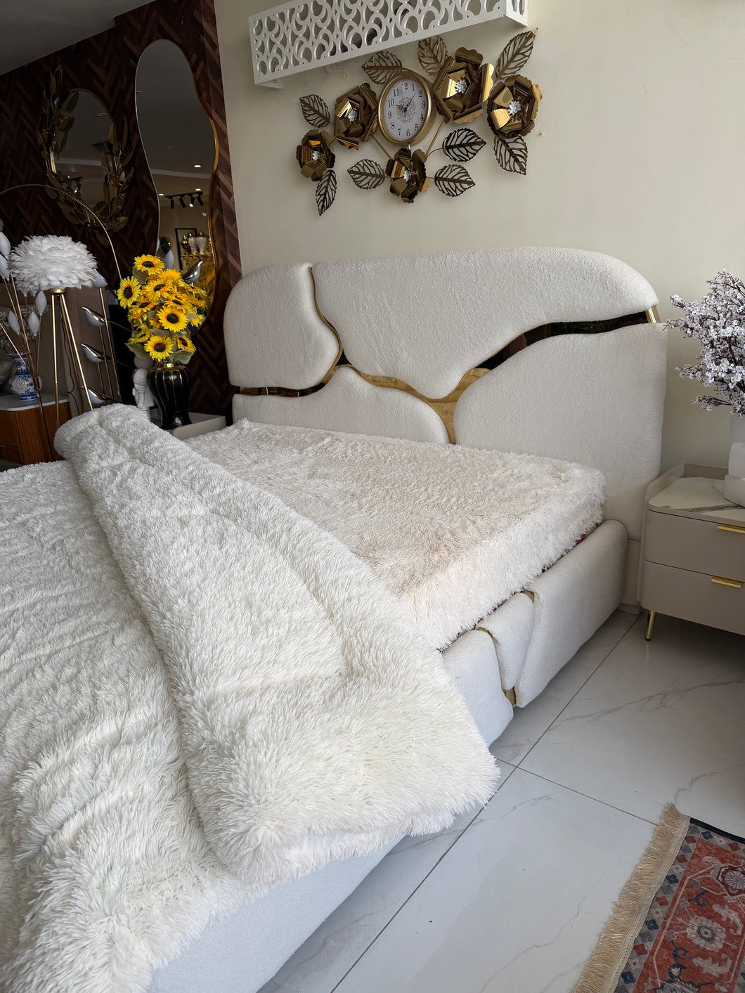 White Fur Bed Spread