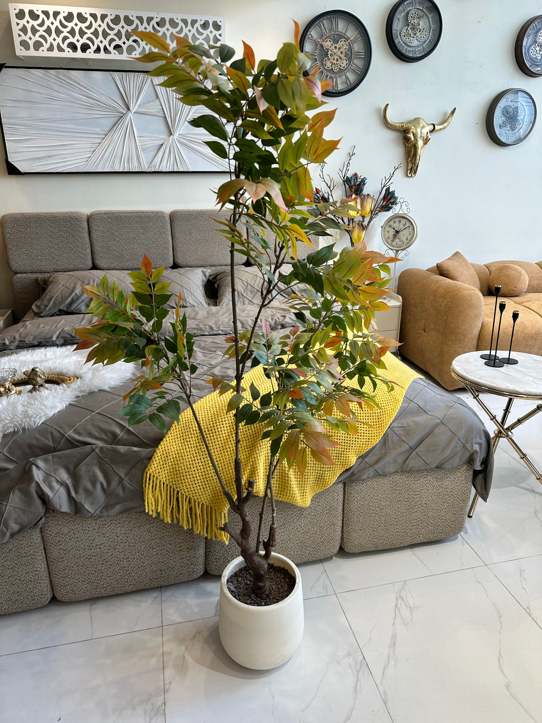 This plant is an artificial indoor tree, likely modeled after a species like a Ficus or a Japanese Maple, designed with a tall, airy structure. It has a graceful, "leggy" look that adds height to a room without feeling too heavy or dense.