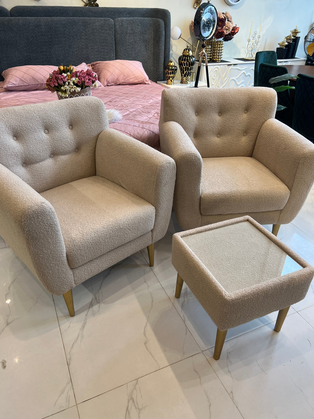 MATERIAL SOLID WOOD + BOUCLE FABRIC+ MOLTY FOAM