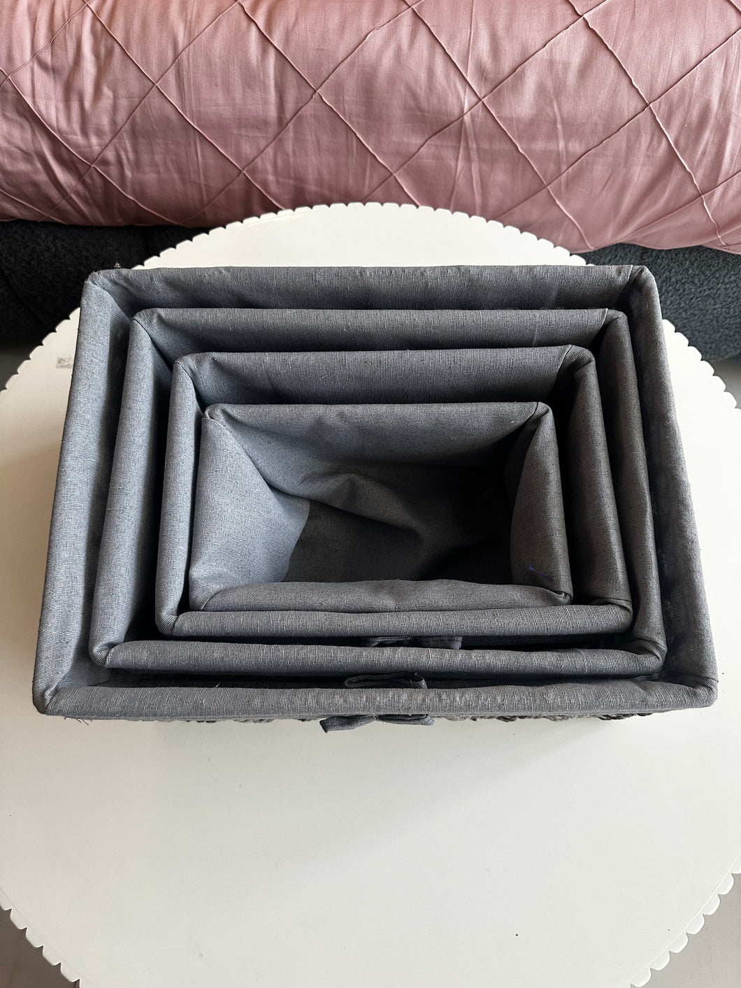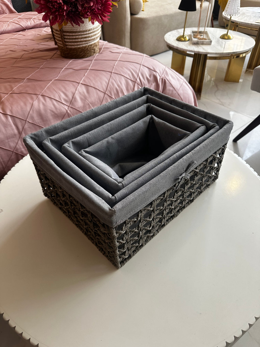 Grey Hand Woven Rattan Storage Baskets